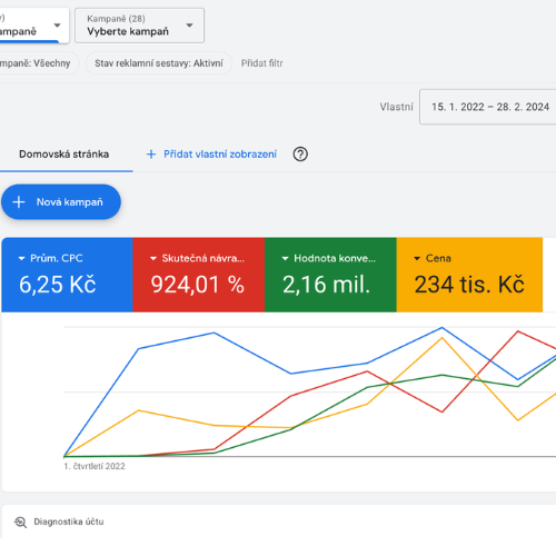 Zovero.cz: Google Ads, které dlouhodobě držely ROAS 924 % a průměrné CPC 6,2 Kč